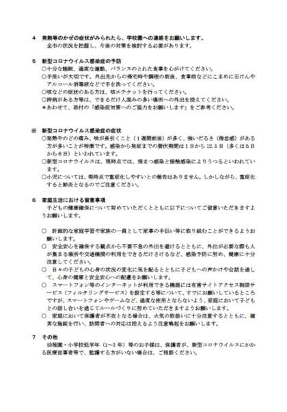 委員会から届いたお手紙です。本日、子ども達が持って帰ります。