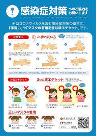 新型コロナウイルスを含む感染症対策の基本は、「手洗い」や「マスクの着用を含む咳エチケット」です。繰り返し子ども達に声をかけてください。よろしくお願いします。