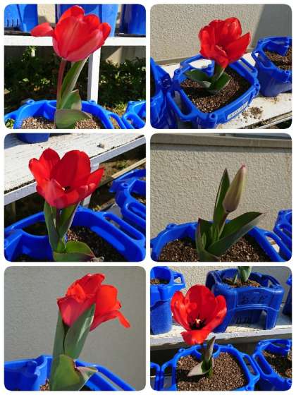 1年生のチューリップは5こ咲いています。つぼみもいっぱい膨らんできています。月曜日、登校してきた1年生が見てびっくりするかもしれませんね。o(^o^)o
