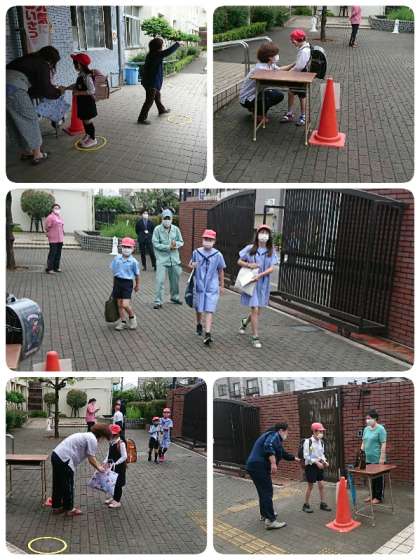 今日は、全学年が3つのグループに分かれての分散登校でした。課題の確認や答え合わせ、新しい課題のやり方等について担任の先生から説明しました。正門での健康観察の後、手洗いを丁寧にすることや人との距離をとるなど、気をつけないといけないことはたくさんあります。子ども達もそれらを意識して活動してしている子が多かったです。