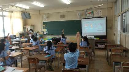 4年生は、今年度初めての外国語活動です。今日は、C-NETの先生と学習をしました。C-NETの先生の名前や出身地などクイズ形式で紹介していただきました。