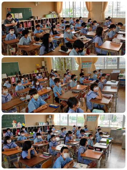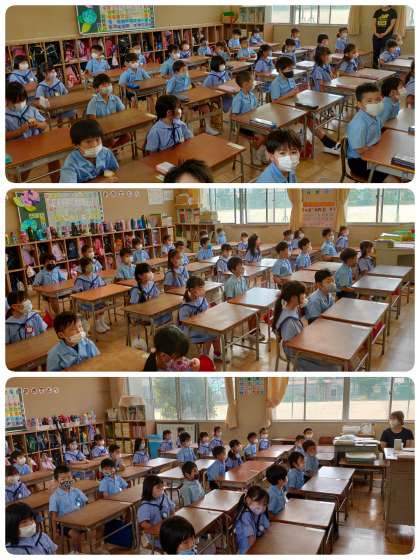 *写真は、1・2・4年の様子です。どの学級もとても静かにお話が聞けていたそうです。花丸ですね。