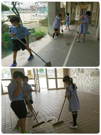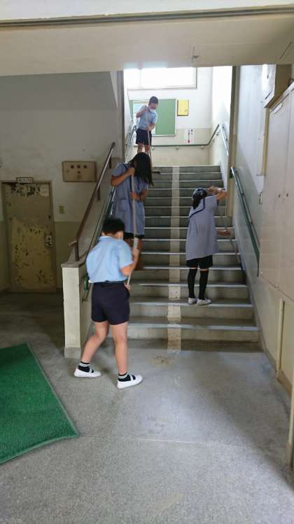 今日から給食当番や清掃活動の再開です。廊下や階段、玄関ホールも割りあてられた学級の子ども達が掃除をしていました。「久しぶりだからピカピカにしてね。」と、声をかけると「はい!!」と返事が返ってきました。