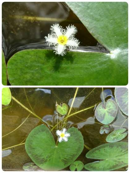 毎年、この時期になるとメダカ池にガガブタの花が咲き始めます。ガガブタは、1日だけ花が咲く一日花で、朝に咲いて夕方には花をすぼませて、水中にしぼんでいきます。花びらがギザギザしていて小さくてとても可憐です。英名はwater snowflakeで、雪の結晶という意味だそうです。