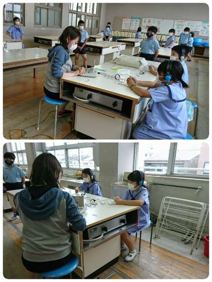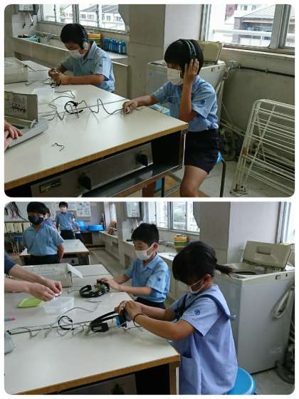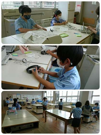 5年生は、自分達の教室の前の家庭科室で聴力検査を行いました。様子を見に行って感心しました。友達との距離の開け方や検査の受け方、器具の消毒の仕方まで、保健室の先生の話がしっかり頭に入っていて、1回ずつ指示をしなくても自分達でさっと行動できていました。教室にいる担任の先生にも「5年生、素晴らしい。態度も満点です。」と伝えました。さすが高学年です。