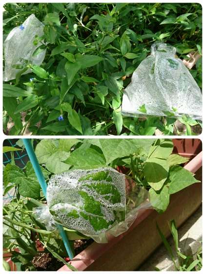 6年生が、先日、理科の学習でツユクサの気孔を顕微鏡で観察していましたが、今日は、気孔から水が蒸発(蒸散)することを確かめるための実験をしていました。写真のように葉っぱにかぶせたビニル袋の中に水滴がたくさんついていました。この実験から、気孔が開いて酸素や二酸化炭素などのガス交換が行われ、その時に蒸散することも学びます。どんどん知識を増やしている子ども達です。