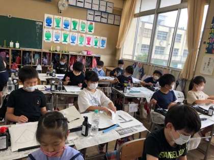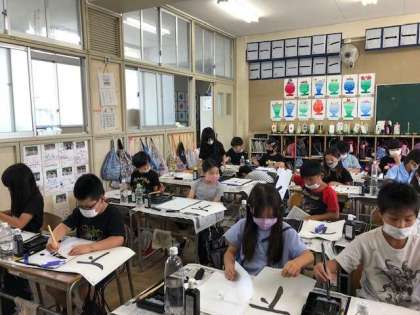 国語科の学習で書道をしました。用意や片付けなど、前回よりも手際よくできるようになりました。気持ちを落ち着けて、ていねいに書くことができました。