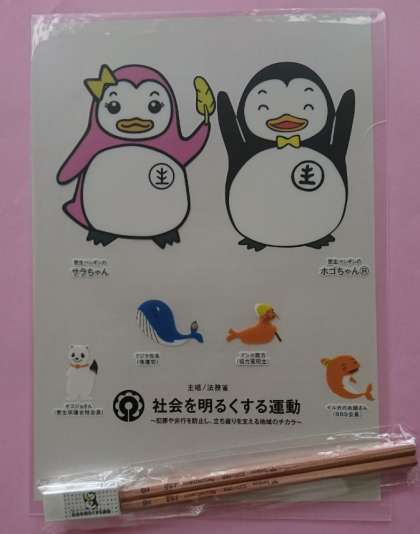 今年度は残念ながら、「住之江区民大会」は中止になり、5・6年生が毎年取り組んでいた標語づくりもありませんでした。今年は70回目の記念の年ということで、昨日、住之江区保護司会会長と住之江区更生保護女性会会長と区役所の方が、社会を明るくする運動の啓発パネルと5・6年の子ども達にクリアファイルと鉛筆・消しゴム・リーフレット等をわざわざ学校まで届けてくださいました。各学級で「社会を明るくする運動」についてお話をしてから子ども達に持って帰らせます。お家でもリーフレット等読んでみてください。