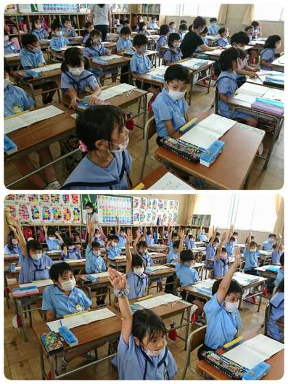 1年生の子ども達、素晴らしい姿勢で学習に取り組んでいました。先生のお話を聞いたり、意見を発表したり、お友達の発表を聞いたりする時、いつも背中がピンと伸びています。担任の先生もみんなががんばっている様子を見て、たくさんほめてくれます。子ども達のやる気はますます上がってきました。