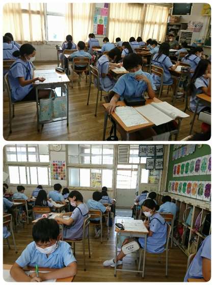 今日の3時間目も6年生が学力調査の算数にチャレンジしました。6年生の子ども達は、とても集中して問題に取組んでいました。真面目にがんばる6年生です。