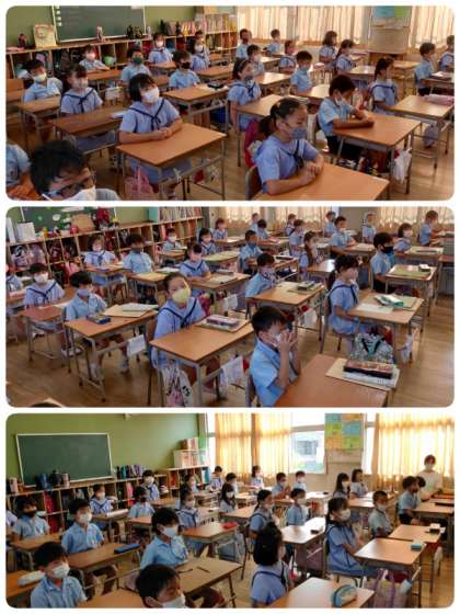 各教室では、子ども達が、始業式の放送をしっかり聞いていました。