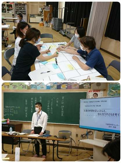 研究討議会では、教育センターの総括指導主事畠中先生に来ていただいてご指導いただきました。研究討議会で先生達もグループに分かれて、今日の授業について主体的に話し合いました。今日の授業のよかった点・改善点など、積極的に意見交流することができました。次は2年生の授業がありますが、今日学んだことを次の授業に活かしていきたいと思います。畠中先生、ご指導ありがとうございました。