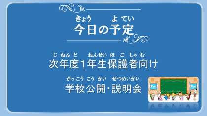 来年度入学予定の保護者向けの学校公開・説明会があります。