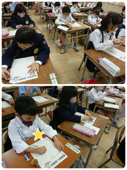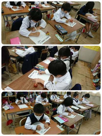 1年生が、生活科の学習で、チューリップの球根の観察カードをかいていました。「何かタマネギみたいな形してる。」「ニンニクにも似てる。」と、球根を手に持ちながら思い思いにつぶやいていました。観察カードをかき出すと、一気に集中。形をしっかり見て鉛筆を動かしていました。