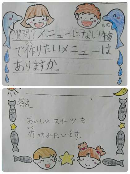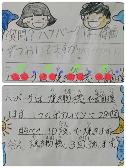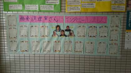 給食委員会の子ども達が作っていた「給食調理員さんにインタビューしました」の掲示物の紹介の2回目です。