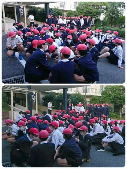 すぐに避難訓練をしました。