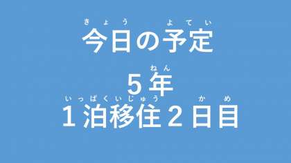1泊移住に出かけている5年生は、みんな元気に2日目を迎えたと連絡が入りました。