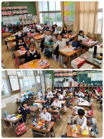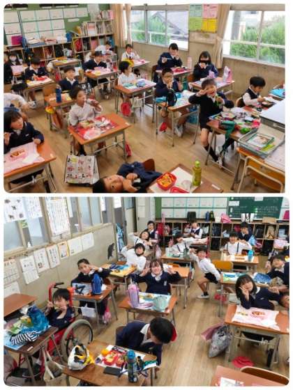 2年生の遠足、本日も雨天のため延期になってしまいました。3回連続で延期になり、児童もがっかりしていましたが、お弁当の時間は、毎回うれしそうに過ごしています。