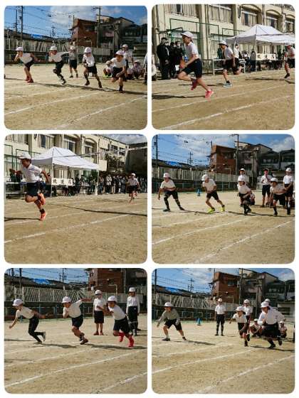 短距離走では、ゴールまで一生けんめい走りきっていました。みんなよくがんばりました。