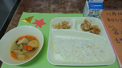 今日のメニューは、あげどりのねぎだれかけ・含め煮・もやしのピリ辛あえ・ごはん・牛乳でした。あげどりのねぎだれかけは、揚げた鶏肉にねぎだれがしっかりからんでいてとてもおいしかったです。子ども達にも大好評でした。含め煮は、根野菜や一口がんもの中まで味がしみ込んでいました。もやしのピリ辛あえは、名前の通りピリ辛で、食感がよかったです。今日もおいしくいただきました。
