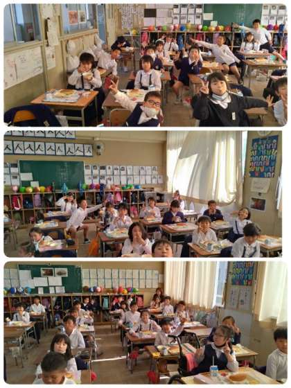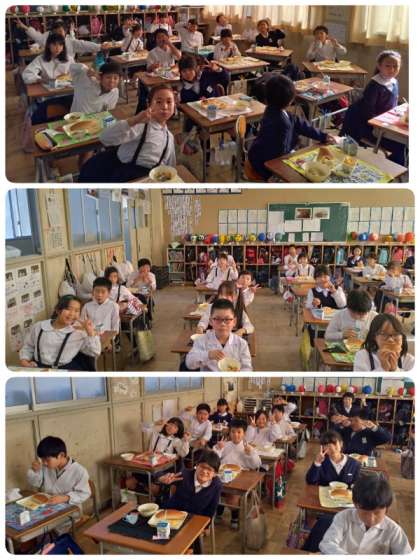 今日のメニューは、スープ煮・ほうれんそうのグラタン・缶詰の白桃・パン・いちごジャム・牛乳でした。