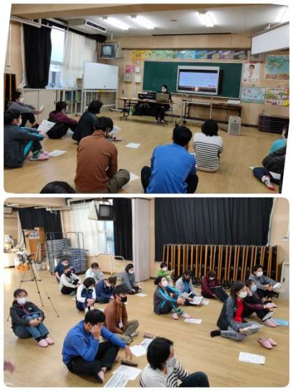 最初は、多目的室で医療的ケアについて教えていただきました。次に教室に移動し、AEDを使用した心肺蘇生の訓練を行いました。