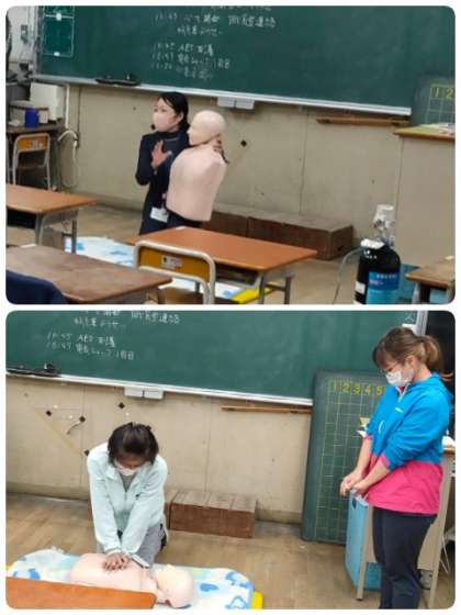 大阪市教育委員会インクルーシブ教育推進室から講師の方に来ていただき、心肺蘇生講習会を行いました。