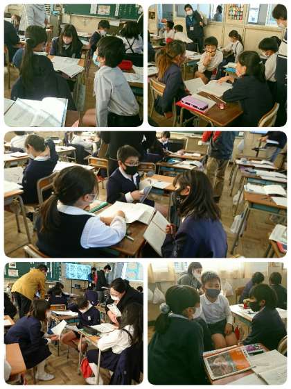 3人で話し合いをするトリオ交流では、どちらのクラスもとても活発に自分の意見を話し合っていました。