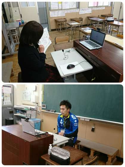 今日は、初めてオンラインを使って児童朝会にチャレンジしてみました。