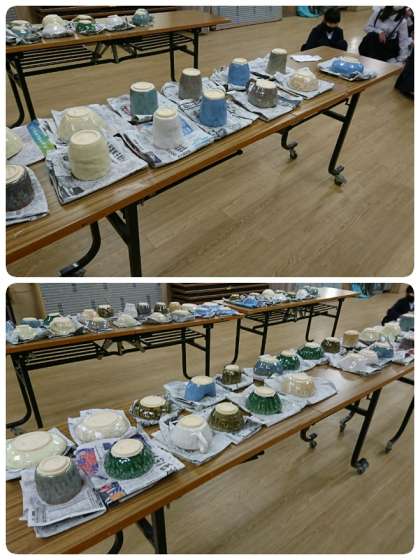 6年生の子ども達が、修学旅行の2日目に、信楽の「宗陶苑」で作製した焼き物が学校に届きました。子ども達がとっても楽しそうに、また真剣な顔で粘土と向き合っていたことを思い出しました。