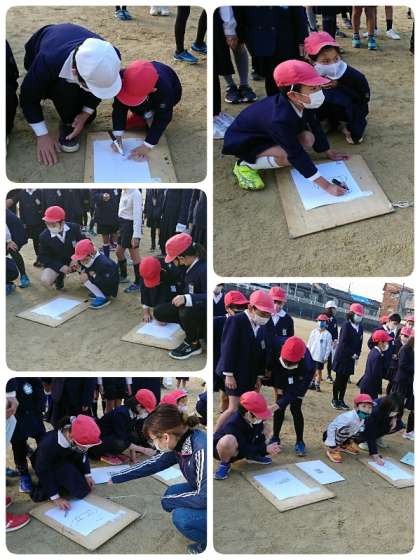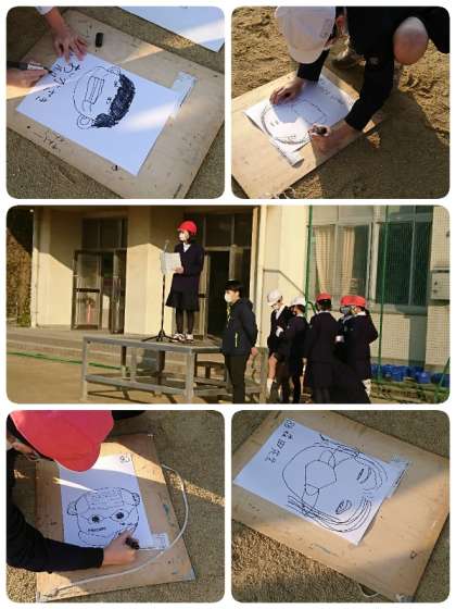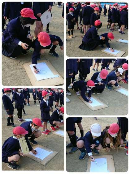今日のニコニコ集会は、3回目の似顔絵リレーでした。今日もたてわり班で仲良く協力して担当の先生の似顔絵を描きました。小さい学年の子ども達も高学年にアドバイスしてもらいながら、がんばって描いていました。完成した似顔絵は、また玄関ホールに掲示します。