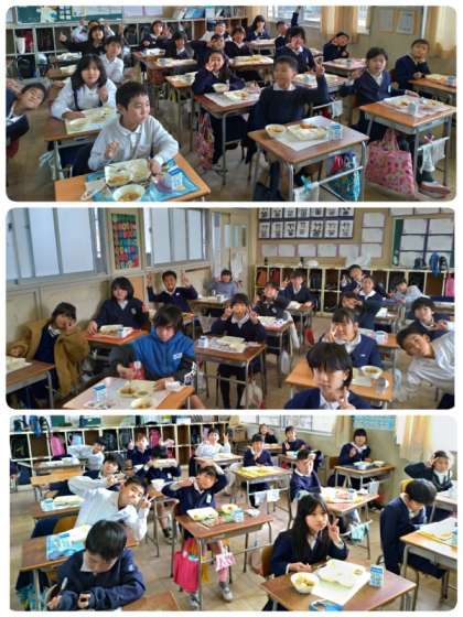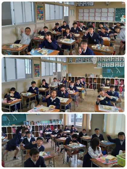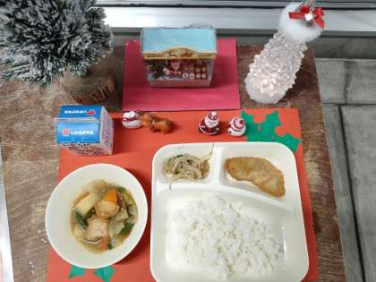 今日のメニューは、たらのフライ・豚肉とあつあげの煮もの・もやしときゅうりのおひたし・ごはん・牛乳でした。