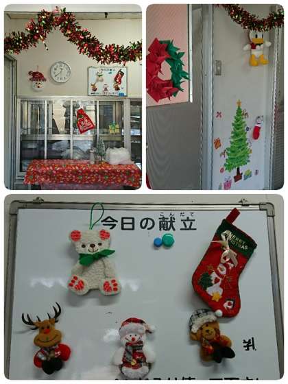 子ども達の喜ぶ顔が見たくて、クリスマスの飾りつけもいっぱいしてくれました。いろいろ工夫して子ども達を楽しませてくれる給食調理員さん、いつもありがとう!!