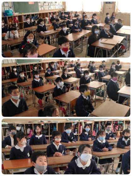 今、コロナの感染がどんどん拡大してきています。冬休みの間も、いつものようにマスクの着用や手洗い・消毒など、感染予防をしっかりすること、そして、できるだけお家で、家族の人と一緒にのんびり楽しい時間を過ごしてほしいこともお話ししました。