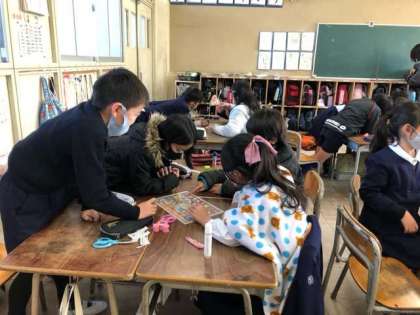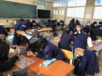 お正月の遊びの一つであるすごろくをしました。展開図からさいころを作りました。楽しく遊ぶことができました。
