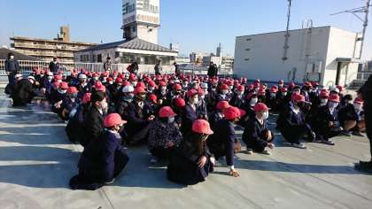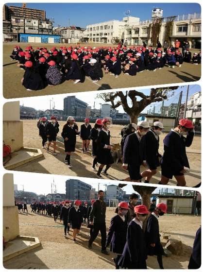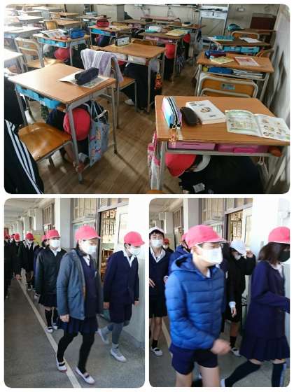 今日は、地震・津波を想定した避難訓練を実施しました。密にならないように低・中・高学年に分かれて、3回行いました。