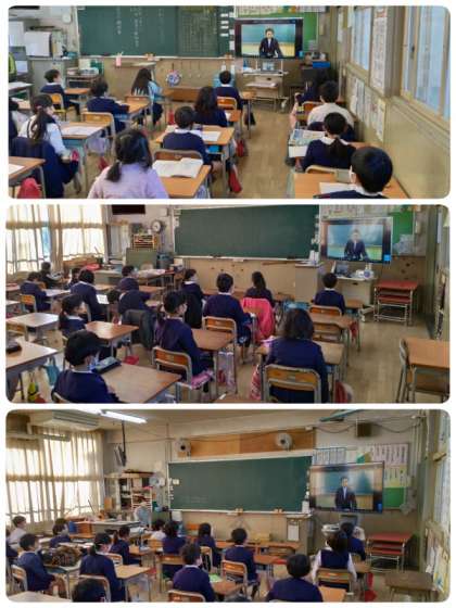 今日は、子ども達に「大阪市小学校学力経年調査」のことや感染症対策のことについてお話をしました。