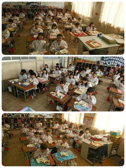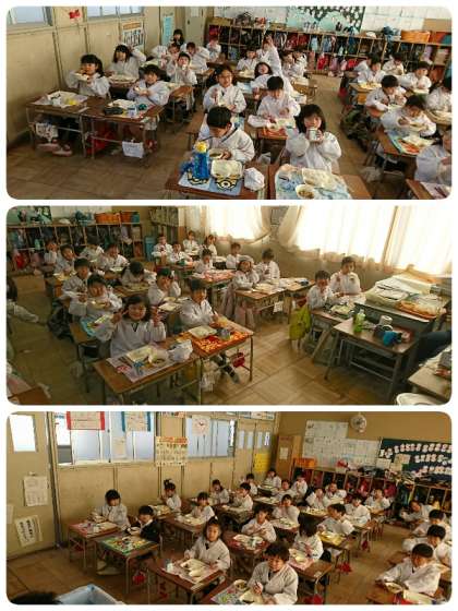 いわしのしょうがじょうゆかけは、しょうがの香りがきいていていわしのくさみもなく味がよく付いていました。含め煮は、ごぼうも柔らかく煮てあってとってもだしがきいていました。いり大豆はカリカリと香ばしくておいしかったです。節分にちなんだ給食で疫病なんか吹き飛ばしましょう。今日もおいしくいただきました。