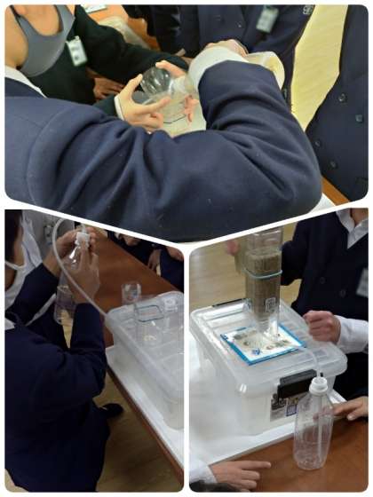 ろ過実験では、グループで協力して実験を行うことができていました。