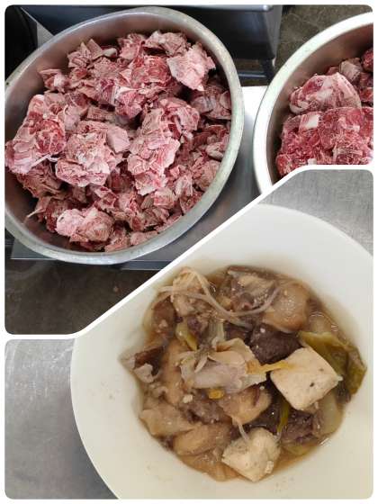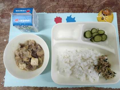 今日のメニューは、すき焼き煮(近江牛)・きゅうりのゆずの香あえ・ツナっ葉いため・ごはん・牛乳でした。すき焼き煮は、大阪府国産農林水産物学校給食提供事業で近江牛が使われていました。お肉にさしが入ってとてもやわらかかったです。きゅうりのゆずの香あえは、ポリポリと食感がよかったです。ツナっ葉いためは、ごはんが進む1品でした。今日もおいしくいただきました。