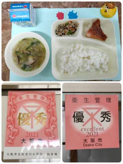 ※今年度も給食室に衛生管理優秀標が届きました。給食調理員さんは、衛生面で日々細心の注意を払い業務にあたっています。