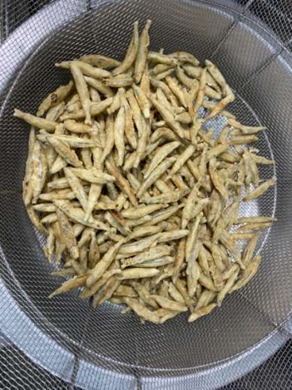 きびなごは、今が旬の魚です。きびなごてんぷらは、カラッと揚がっていておいしかたっです。