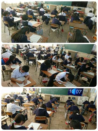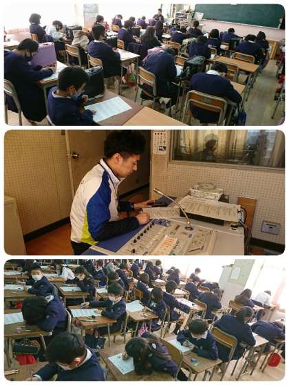 5時間目に、今年度3回目の住吉川漢字習熟テストを実施しました。今回も校内放送で一斉にテスト開始。全ての教室がシ〜ンと静まり返り、子ども達が鉛筆を走らせる音だけが聞こえてきました。