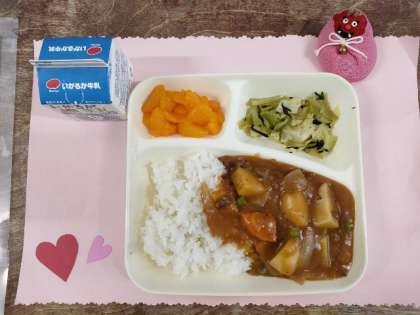 今日のメニューは、ハヤシライス・キャベツのひじきドレッシング・みかん(缶)・牛乳でした。