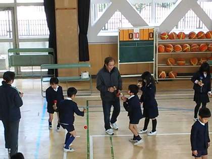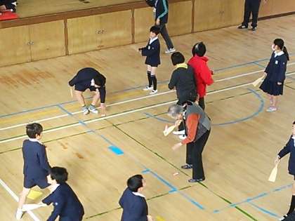 3年生の社会科・総合で「昔遊び体験」学習を実施しています。地域のみなさんに、こま・はねつき・けん玉・竹とんぼ・お手玉などを教えていただきました。