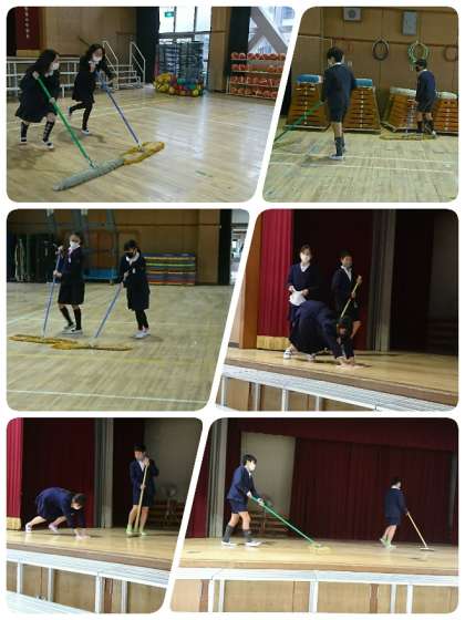 6時間目、今年度最後の委員会活動がありました。運動委員会の6年生の子ども達は、卒業式に向けて講堂の清掃活動をしていました。自分達の卒業式を行う講堂をきれいにしたいと子ども達が言ったのでと担当に先生から聞きました。学校中のあちこちで、5・6年生が真面目に委員会活動に取り組んでいました。住吉川小学校の高学年の行動は素晴らしいなと本当に感心しています。