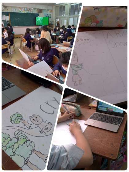 5年生が、英語の紙芝居作りに取り組んでいました。