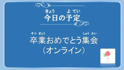 今日は、卒業おめでとう集会をオンラインで行います。