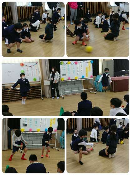 5時間目、多目的室で「なかよしお楽しみ会」がありました。まずは、ミニ得意技大会です。自分の得意なことを順に発表していきました。発表している子ども達は、みんな笑顔です。友達が発表しているのを見ているときも、「がんばれ〜!」と応援しながら熱心に見ていました。次にチームに分かれて、ラスト1ボウリングをしました。最後に1ピン残ったチームが勝ちになります。1〜6年生までみんなで仲良く活動し、とっても楽しそうに過ごしていました。