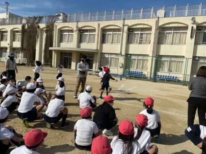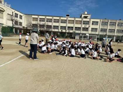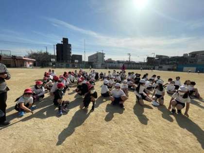青空の下、3年生駅伝大会を行いました。クラスを3チームに分け、全9チーム対抗で行いました。一人3周ずつ走って、たすきをつないでいきました。